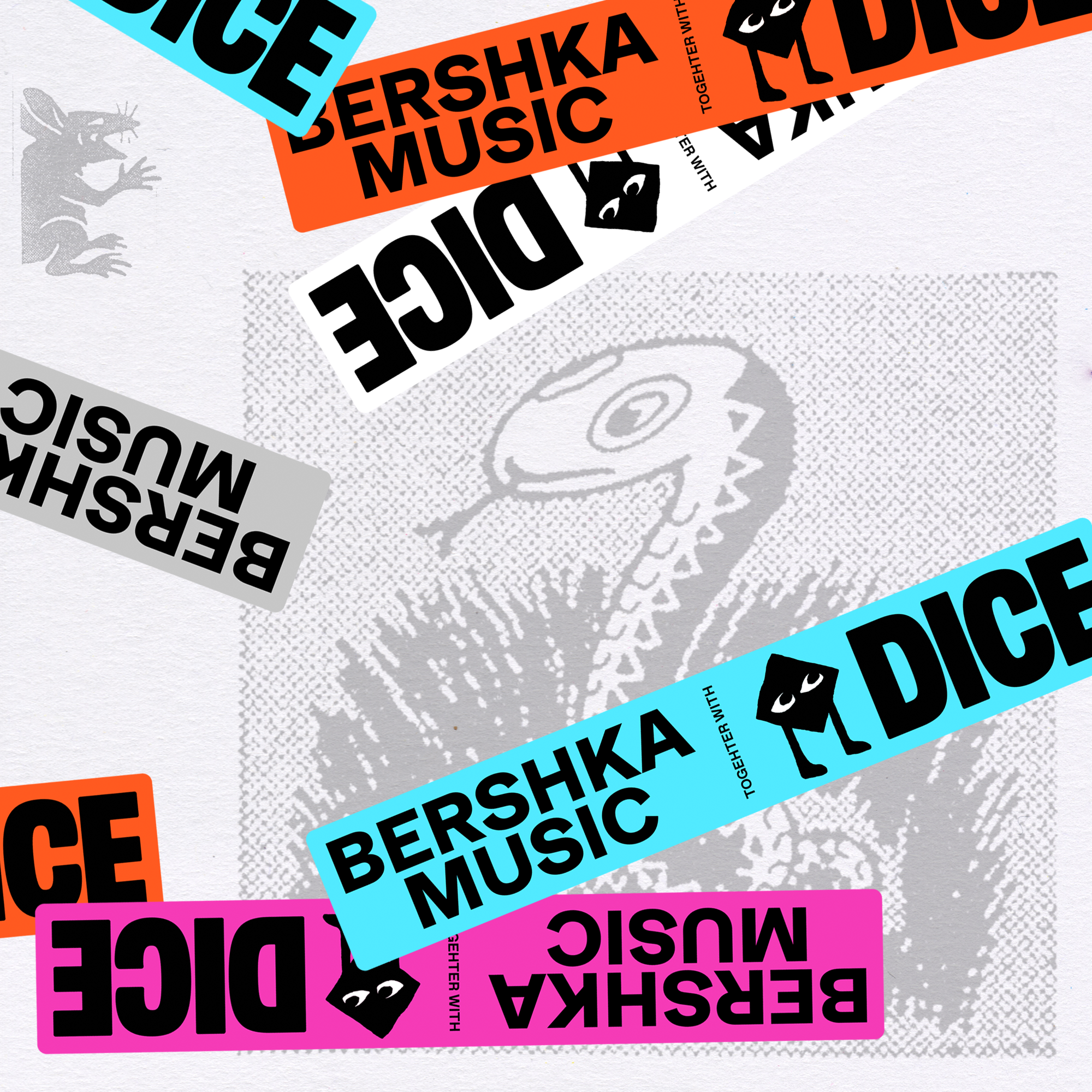 The lock-up logo takes the shape of a sticker—a living symbol that connects Bershka Music and DICE. Flexible and disruptive, it breaks the usual take on traditional branding and becomes an expression of community and movement.