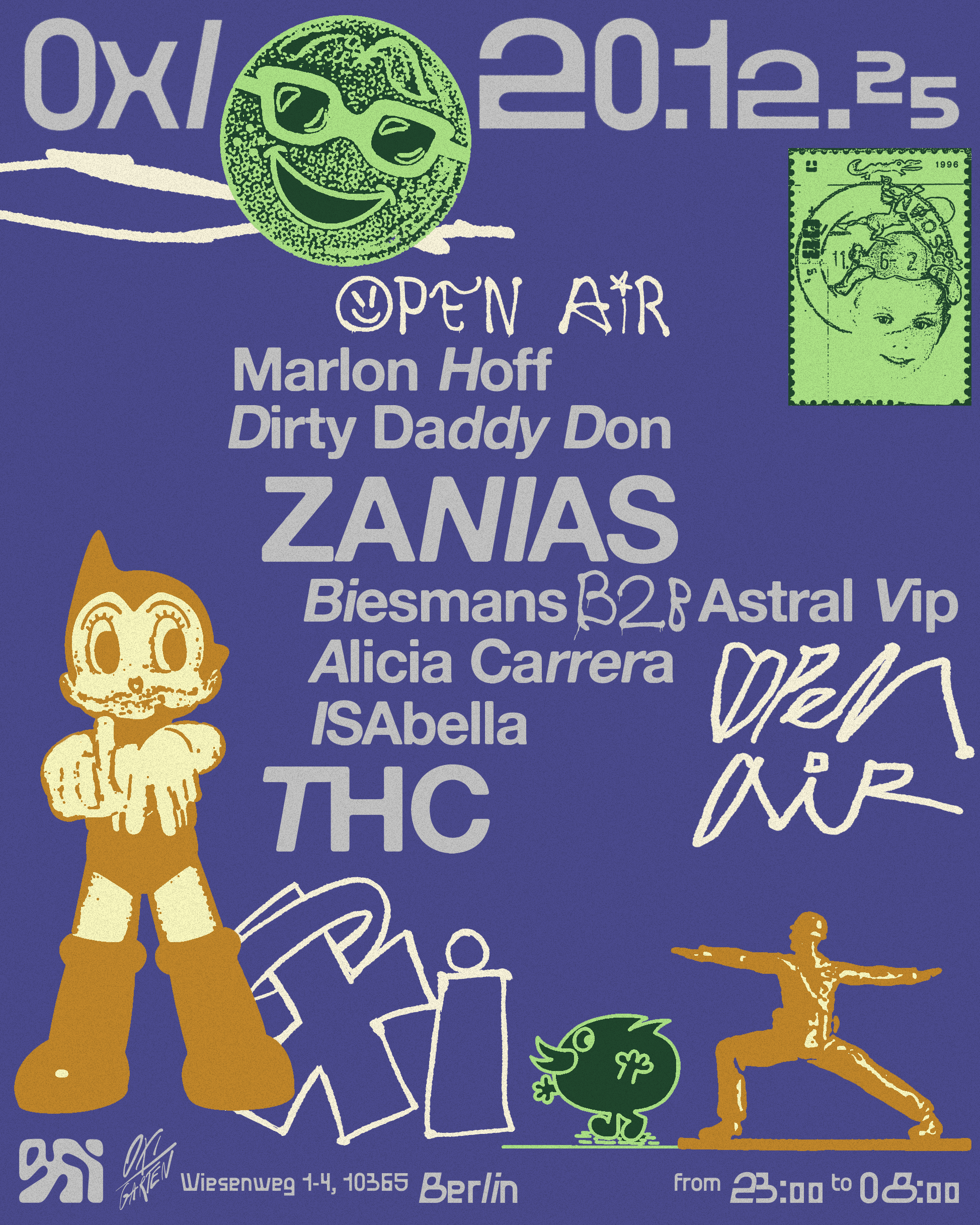 OXI’s visual identity blends digital and analog with an eclectic, retro, and comic-inspired style, creating a friendly, festive vibe that matches the club’s energy. Each month, three key colors drive visual cohesion, evolving with time.